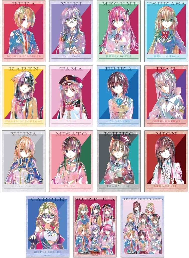 | 概要 | 「ヘブンバーンズレッド」より、『トレーディング Ani-Art ブロマイド』の登場です。 【商品詳細】 <キャラクターラインナップ> |