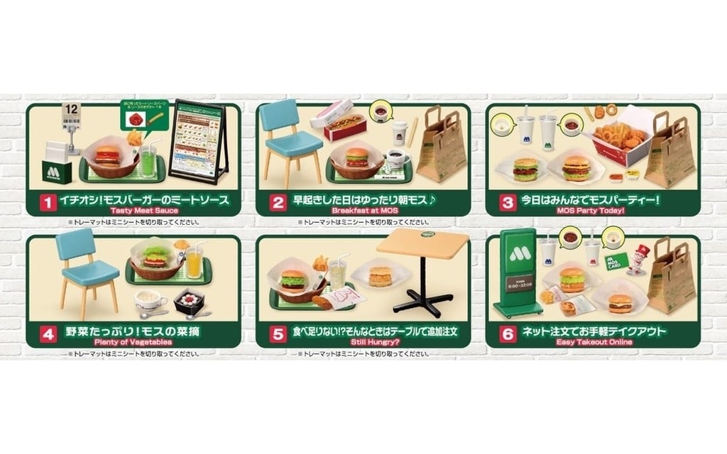 | 概要 | モスバーガーとリーメントのコラボ商品が登場! 本物そっくりでおいしそうなアイテムが盛りだくさん! 全種集めると、お店が再現できるよ。 【商品詳細】 【ラインナップ】 |