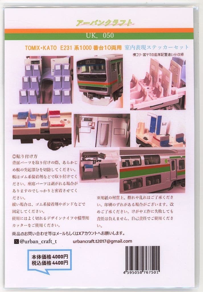| アイテム名 | 1/150 TOMIX/KATO E231系1000番台10両用 室内表現ステッカーセット [UK.050] |