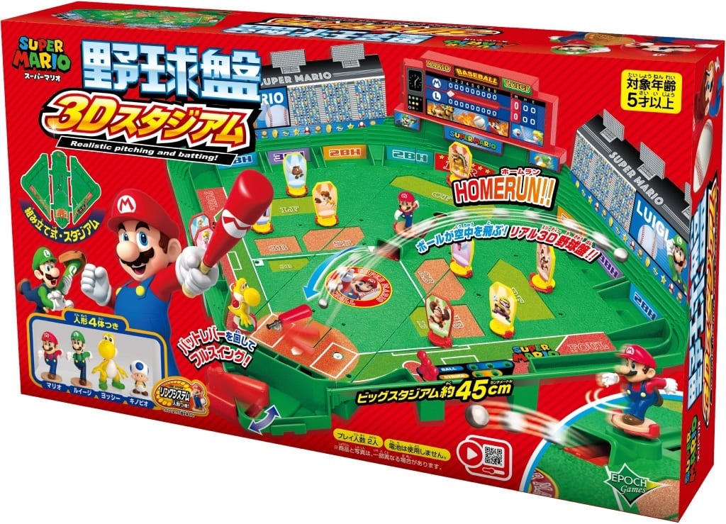 概要 | スーパーマリオの野球盤が組み立て式になって登場! コンパクト収納で片付けが簡単!3Dピッチング機能搭載! リアル投球アクション、直感バッティング機能でより臨場感のある野球を楽しめるようになりました。 キャラクターのフィギュアが4体付属します。 別売りのリンクシステム対応人形を取り付けて自分だけのチームが作れます! 【商品詳細】 プレイ人数:2人 |
