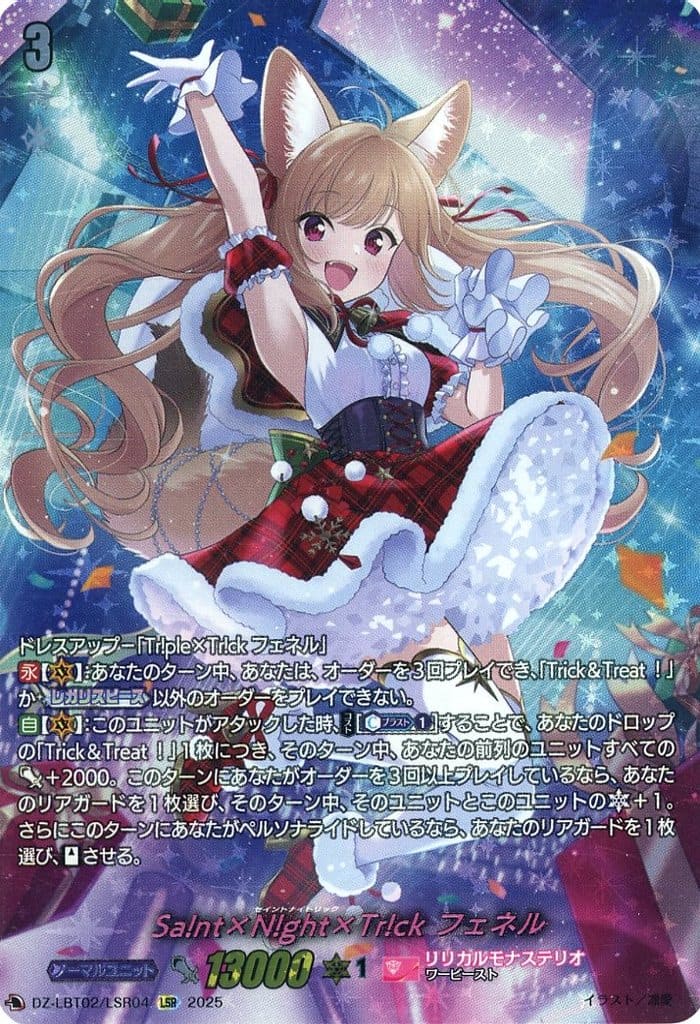 ヴァンガードのレアカード「Sa!nt×N!ght×Tr!ck フェネル(DZ-LBT02/LSR04[LSR])」の価格推移や入手方法の情報をまとめています。