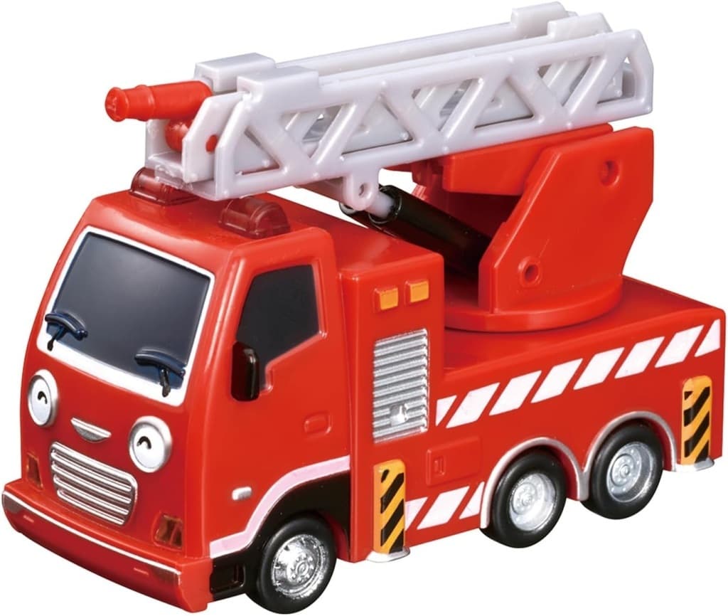 | 概要 | ちびっこバス タヨから消防車モチーフの「フランク」が登場! ころ走行で車遊びが楽しめるだけでなく、プレイセットと連動して楽しむことができます。はしごが伸びるギミック付き! (C)ICONIX/EBS/SEOUL |